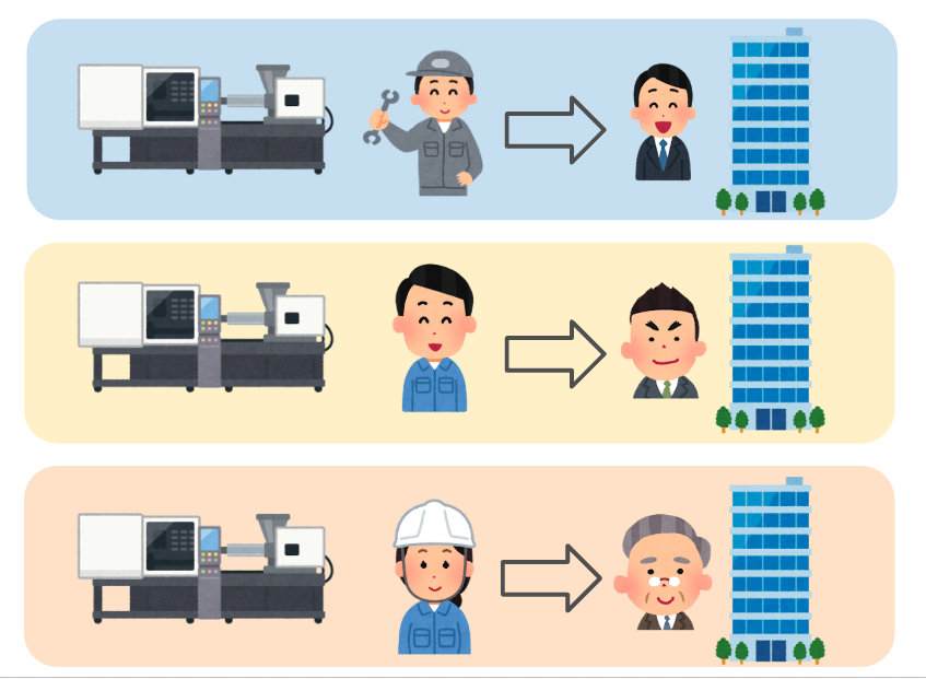 多くの工場では、こんな形で仕事を分けているのではないでしょうか。